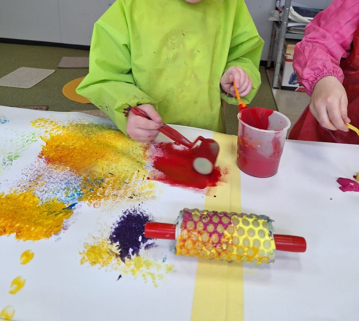 Wir werden malen, matschen, kleben und mit viel Spaß, Geschichten und Liedern eine bunte Kunstschulzeit erleben.